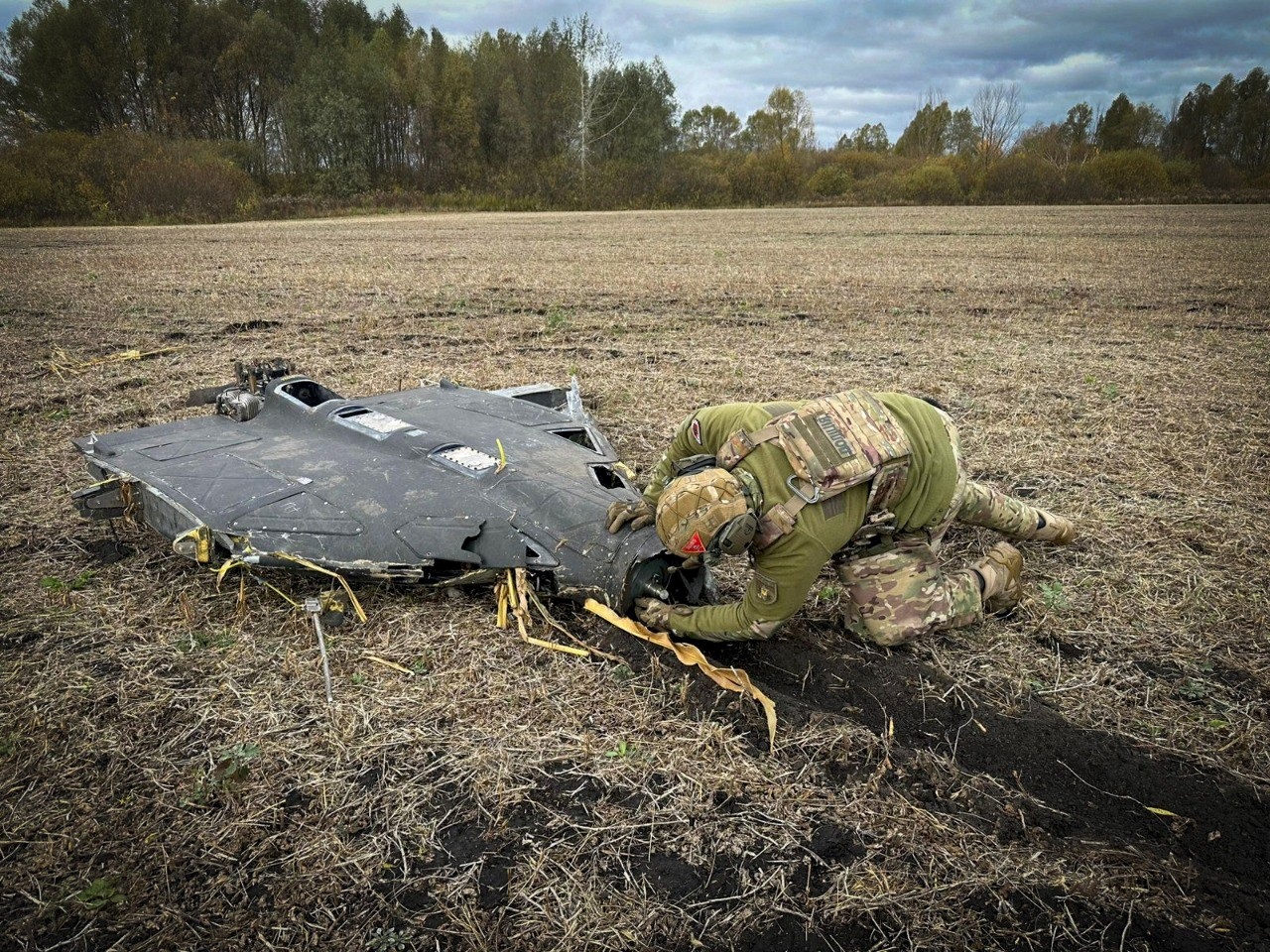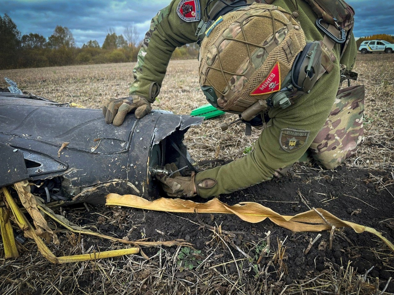 Збитий Силами оборони України ударний БпЛА росіян впав на полі неподалік одного із сіл Сумського району і не вибухнув. Знешкоджувати його прибула мобільна група управління вибухотехнічної служби Головного управління Національної поліції в Сумській області.