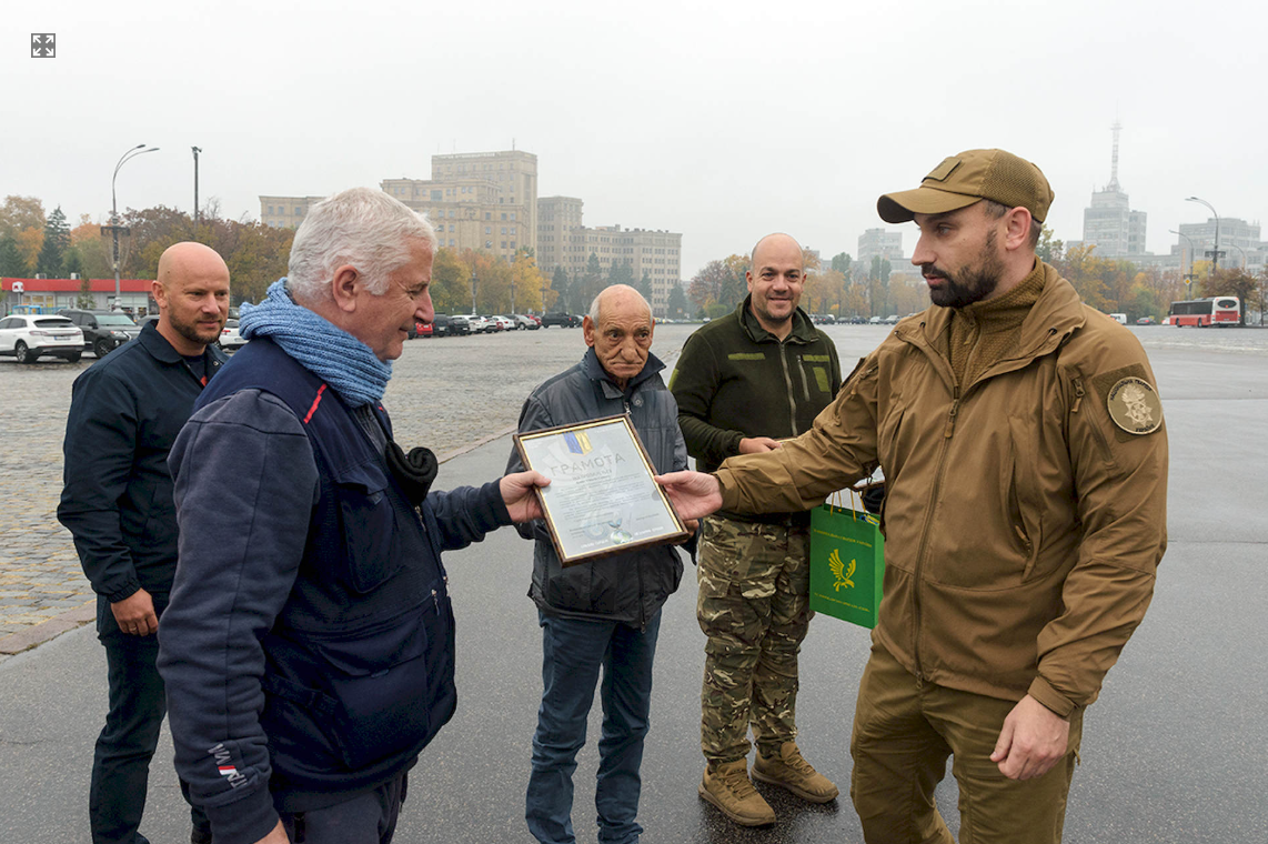 Якщо порівнювати за таким критерієм, то 5 Слобожанська бригада «Скіф» НГУ може слугувати прикладом для наслідування. Наші друзі звідусіль допомагають гвардійцям. От один з останніх прикладів – італійський журналіст Франческо Януці разом із трьома товаришами Роберто, Віторіо та Чічо привезли нам у бригаду дві автівки – позашляховик Джип та швидку допомогу Фіат.