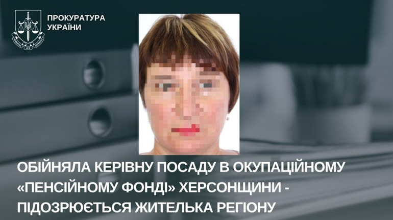 Як повідомляє Херсонська обласна прокуратура, 51-річна жінка у 2022 році обійняла посаду так званого «заместителя начальника Управления пенсионного обеспечения – начальника отдела методологии и организации работы по применению пенсионного законодательства» незаконно створеного «Пенсионного фонда Херсонской области». Жінка виконувала організаційно-розпорядчі функції, організовувала роботу з впровадження російського пенсійного законодавства на окупованій території.