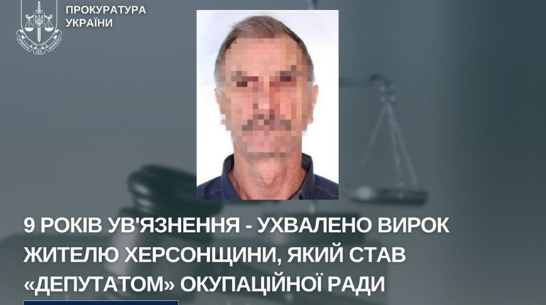 Суд заочно визнав чоловіка винним у колабораційній діяльності (ч. 1 ст. 28, ч. 5 ст. 111-1 КК України) та призначив покарання — 9 років позбавлення волі з конфіскацією майна, а також позбавив права обіймати будь-які посади, пов’язані з виконанням організаційно-розпорядчих та адміністративно-господарських функцій, у державних органах, місцевому самоврядуванні або органах, що надають публічні послуги, та брати участь у виборчому процесі строком на 13 років.