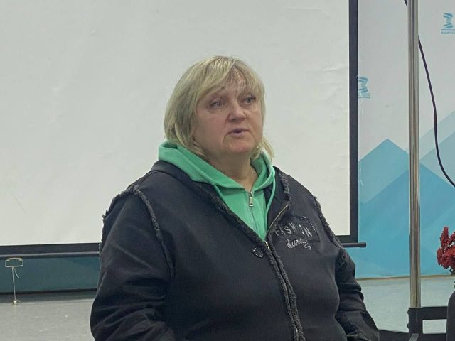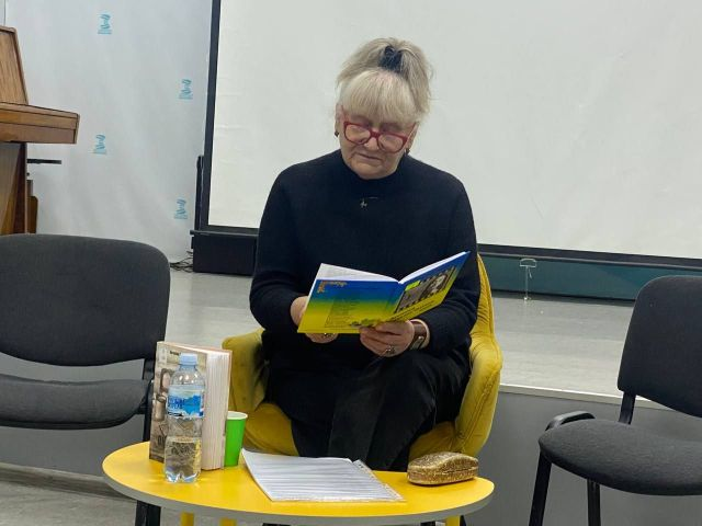 Антоніна Букрєєва прочитала новелу “Господар” – про те, як житель Якимівки на 58-й день війни зірвав рашистський триколор і викинув його у контейнер для сміття. Учасники презентації, до слова, могли переглянути відеосюжет про сміливий вчинок якимівця.