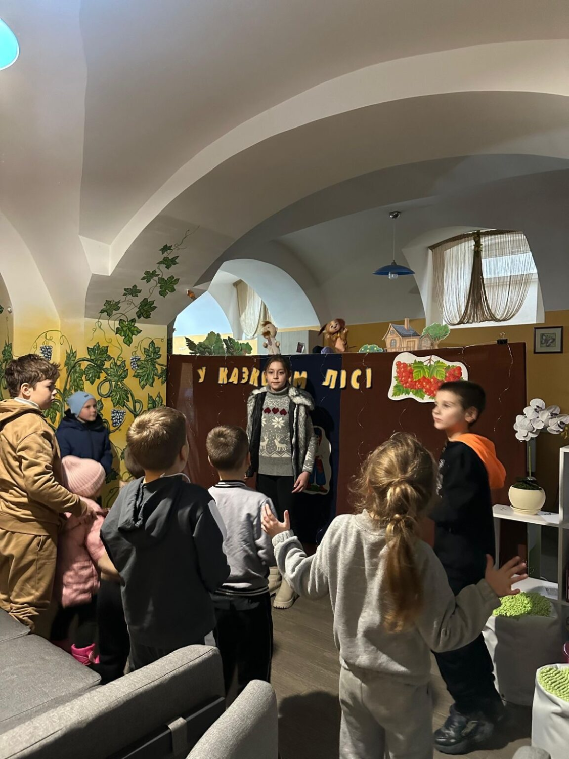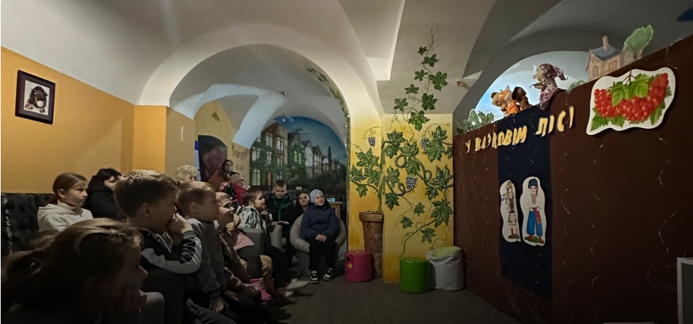Працівники центру підготували для малечі лялькову виставу «У казковім лісі». З перших секунд цього дійства було видно – це не просто розвага, а можливість вирватися зі щоденних переживань, перенестися туди, де живуть добро, дружба й маленькі дива. Діти сміялися, розгадували загадки, допомагали казковим героям і долали вигадані перешкоди так щиро, ніби насправді рятували чарівний казковий світ.