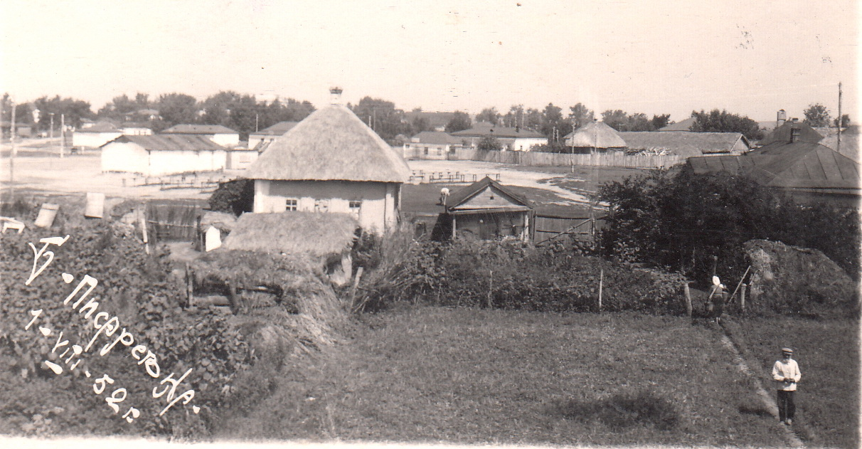 Та одного разу якось сталося так, що нас відпустили раніше, коли череда ще не пройшла. Із дитсадка ввечері нас ніхто не забирав. Ми ходили додому самі з сестрою. Дійшовши до прогоні, ми побачили, що десь на середині її йде колгоспна череда. Потрібно було повернутися в садок, бо зовсім уже близько, а ми пішли далі, по ходу череди. Почали виходити корови, заповнюючи всю широку вулицю, бо череда була дуже велика. Стало чути і рев бугая. Ми полякалися і почали ховатися в пригородок одного з будинків. Влізли в нього легко, бо загорожка була старенька і була не з усіма дощечками. Ріс великий бур’ян. Сестра з переляку сіла в бур’яні, а я стояла за ним. Череда була чимось збуджена. Корови майже всі не йшли, а бігли.