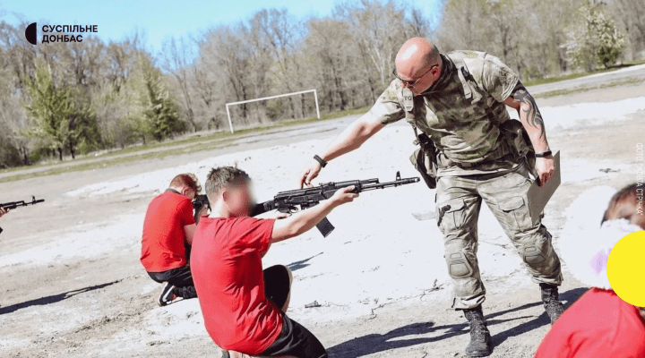Замість казок — стройова підготовка. Окупанти вдягнули дошкільнят у воєнну форму