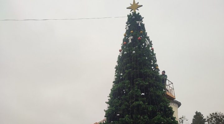Центральну площу Тростянця прикрасили новорічною зеленою красунею