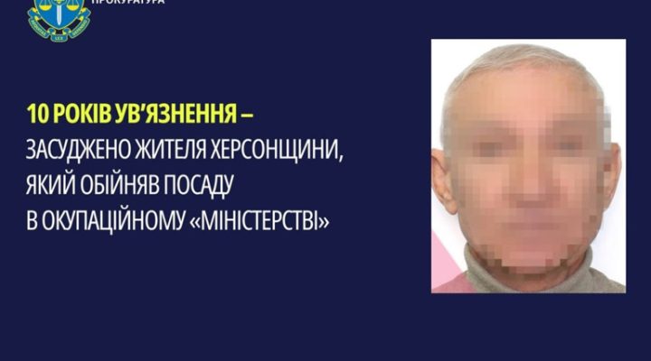 Колаборант з Херсонщини, який влаштувався до окупаційного міністерства, отримав 10 років ув’язнення