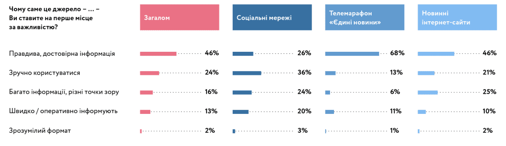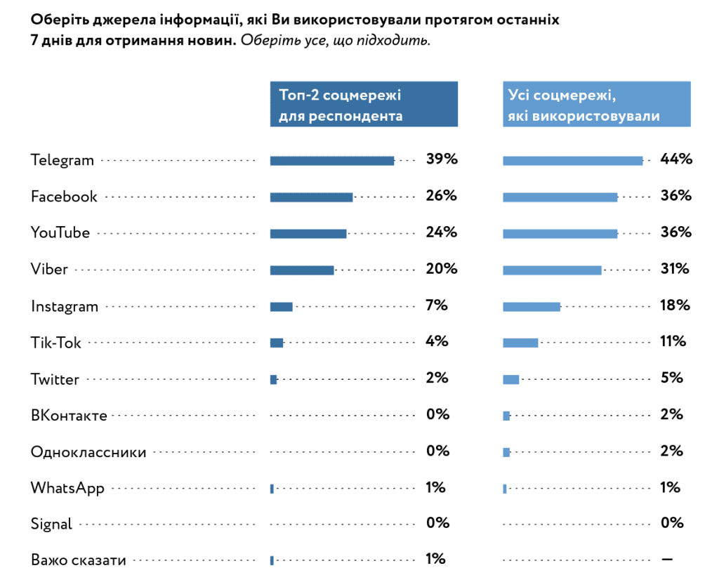 The dominance of Telegram channels as a source of information proves that traditional information formats, from television to online media, are losing relevance and are not keeping up with the development of technology and society. Their popularity is not due to trust, but mainly to the convenient format of receiving information.