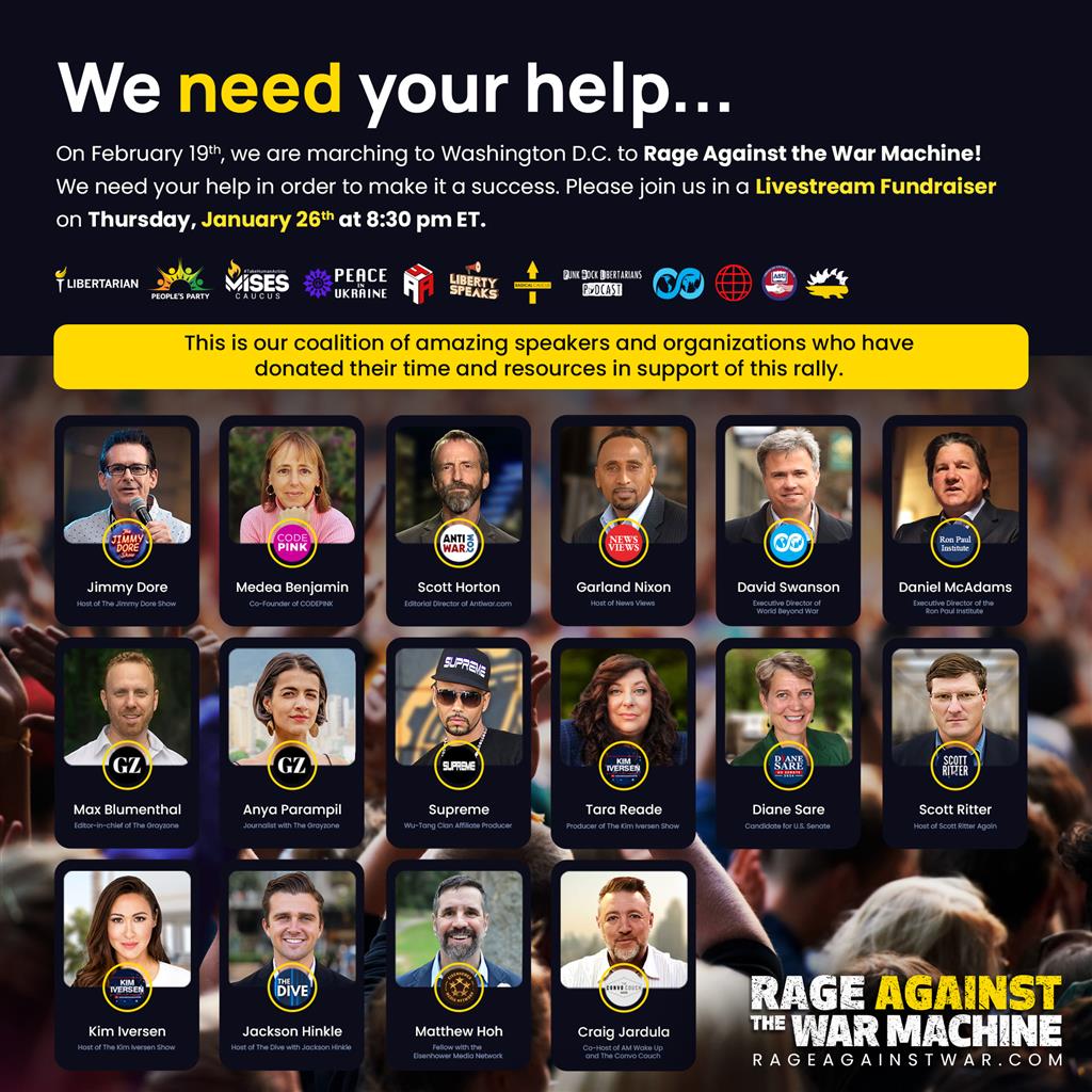 The march on Washington, called “Rage against the war machine” is organized by people like Jackson Hinkle, Scott Ritter, Jimmy Dore, Max Blumenthal and others who directly promote Russia’s information agenda in the United States. Many of them worked for Russia Today or Sputnik.