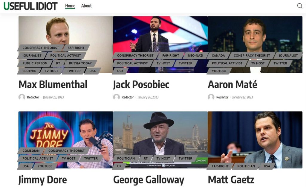 The site is dedicated to individuals, parties, and media outlets that openly and systematically work for the Russian information agenda.