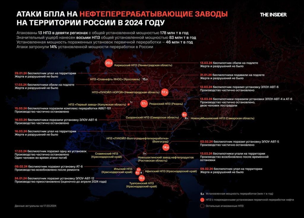 According to the estimates of The Insider, 9 refineries have already been hit since the beginning of the year. The attacks are far from innocent.