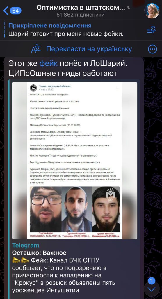 Our research and analysis group InfoLight.UA is closely monitoring everything that is happening in the information space around the terrorist attack in Crocus City.
