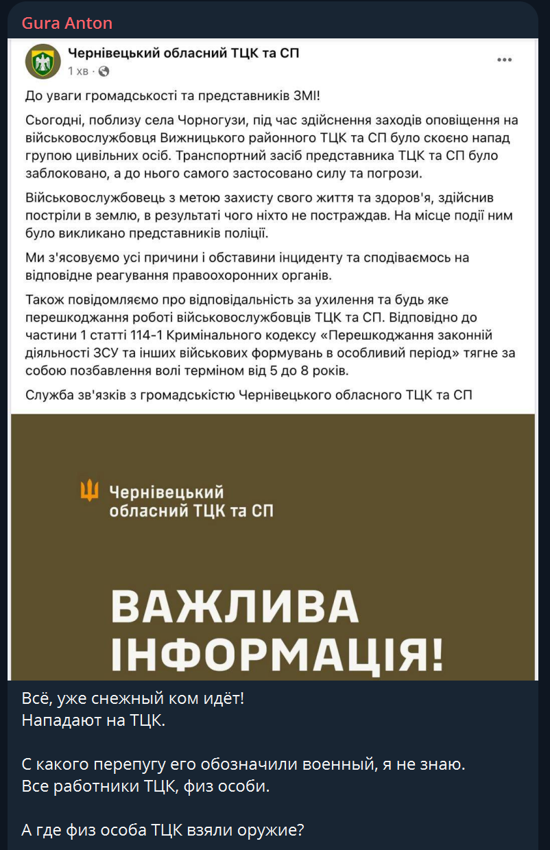Important! The TCC soldiers did not use weapons in response, although they had the legal right to do so. However, anti-mobilization networks interpreted this as weakness, the rightness of those who resist, and even more called for this vector of resistance.