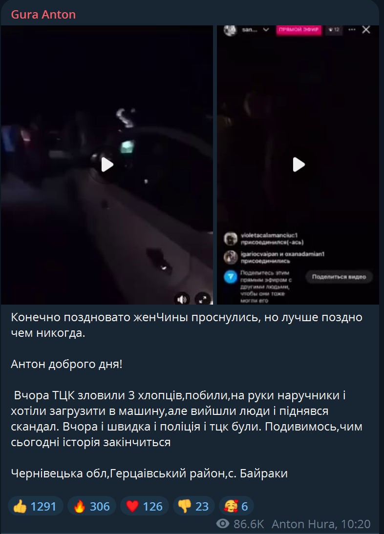 The incident in Kosmach in early February 2024 clearly demonstrated how disinformation and organized provocations lead to real violence. On February 5, TCC employees arrived in the village to serve summonses. According to local residents, attempts to serve the summonses to a father with many children and a person with a disability caused the first tension between the community and TCC representatives.