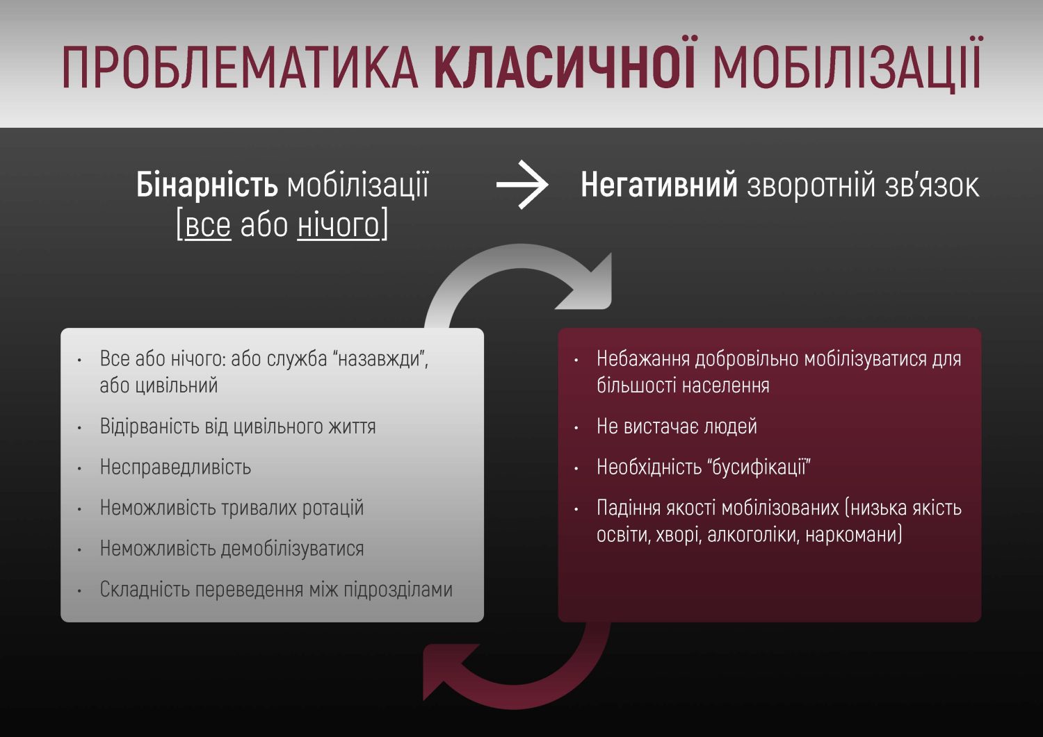 There is a negative feedback between the complexity of military service and mobilization: the more difficult the service, the harder it is to find people who are ready to mobilize voluntarily. The more difficult it is to mobilize new people, the more difficult the service becomes for the military. With the current approach of forced mobilization, it is impossible to break this negative feedback loop. The more aggressive the forced mobilization, the greater the resistance of society. To fix this, we need a new approach, new rules of the game, and a new social contract.