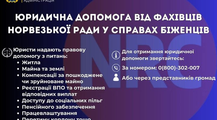 Юристи Норвезької ради у справах біженців в Україні надають безкоштовні інформаційні, консультаційні послуги та правову допомогу мешканцям Херсонщини. Для отримання […]