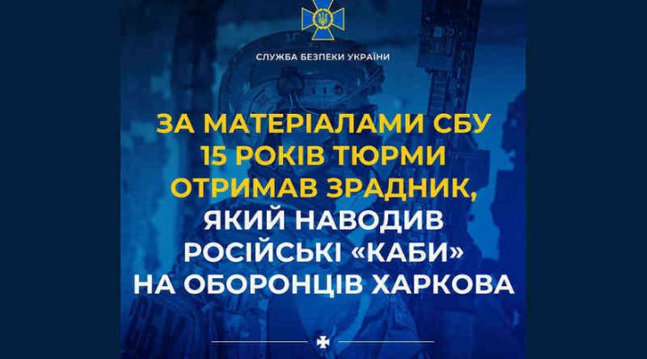 За матеріалами СБУ 15 років тюрми отримав зрадник, який наводив російські «КАБи» на оборонців Харкова. Про це повідомив речник Управління […]