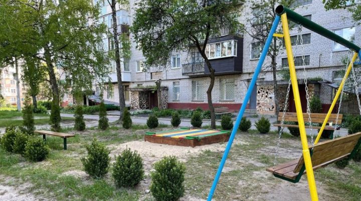Сім’я переселенців власноруч облаштувала на подвір’ї п’ятиповерхівки дитячий майданчик